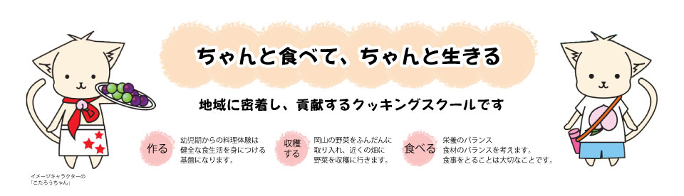 岡山で生まれ、岡山をこよなく愛する児たろう先生が「料理を通じて岡山の子供たちに元気と笑顔を!」との願いから開校されたキッズクッキングスクールです。